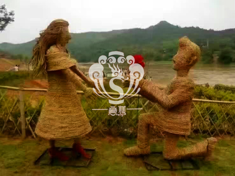 稻草人藝術,不僅充分利用的稻草秸稈制作出各種有趣的形象,與此同時還能減少秸稈的焚燒,為我們的藍天白云,子孫后代做一份貢獻!現在的精致稻草人藝術通常是由專業美術老師的造型放樣,然后由焊工師傅焊接出立體造型造型,然后以稻草或者稻草繩為材料編捆制作而成。
